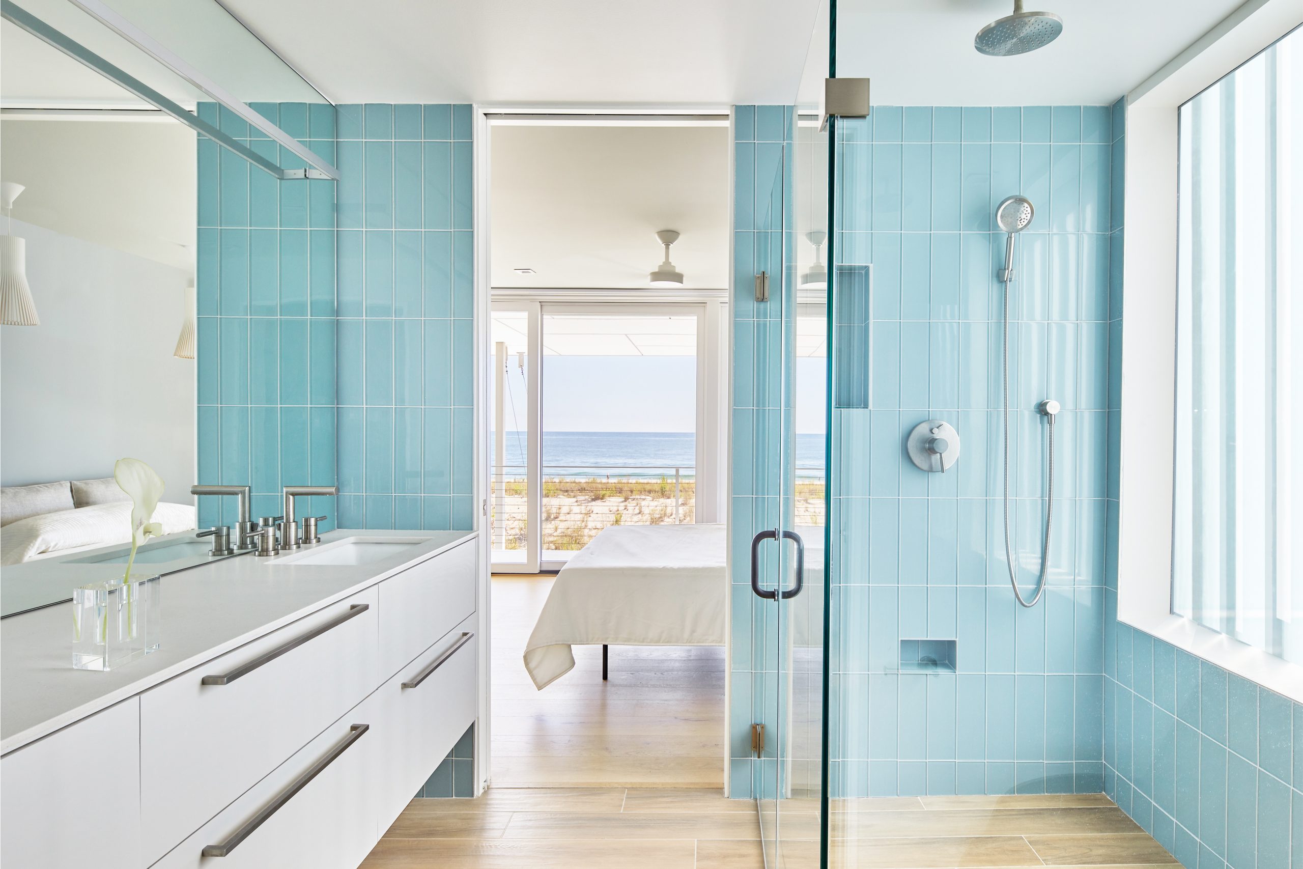 - Zero-threshold showers eliminate the step up into the shower, allowing not only for wheelchair access but easier in-and-out for all users.