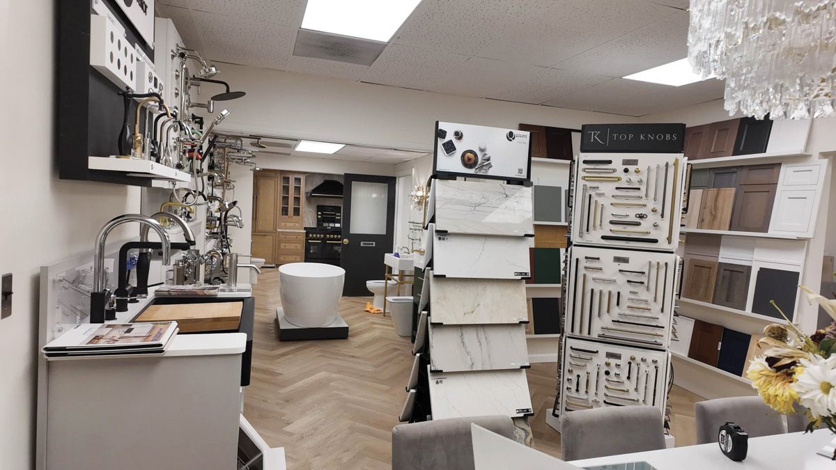 In the boutique-style showroom, located on the second floor of a building in the heart of a charming town, every product category has its own room. There are also two vignettes – a luxury vignette and an entry level kitchen space.