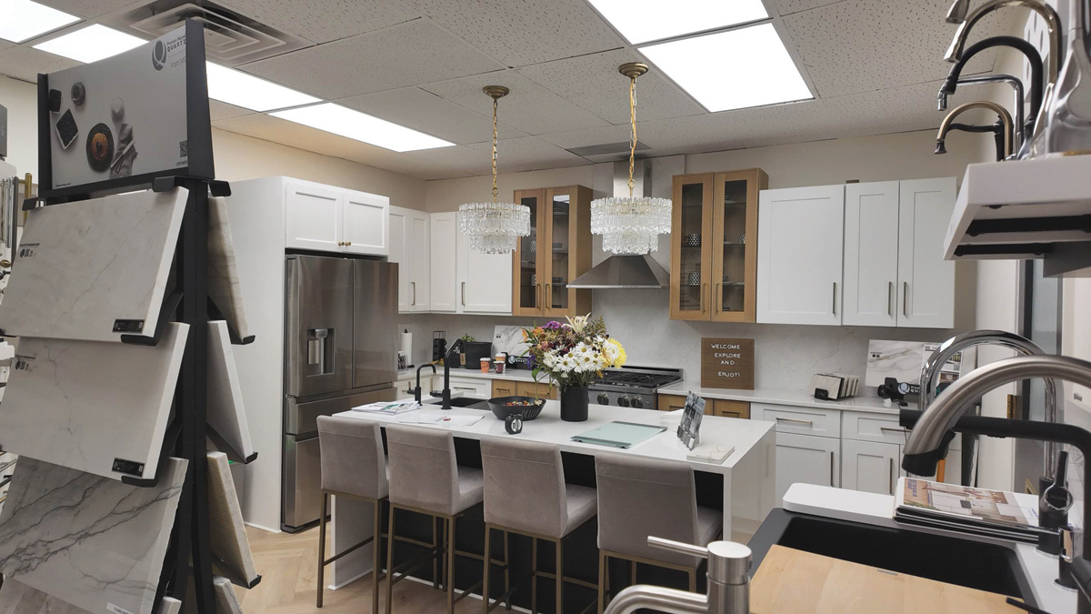 The showroom also features a “Revive” display run by a division of the company that creates a special niche for clients who may want to retain existing cabinetry.