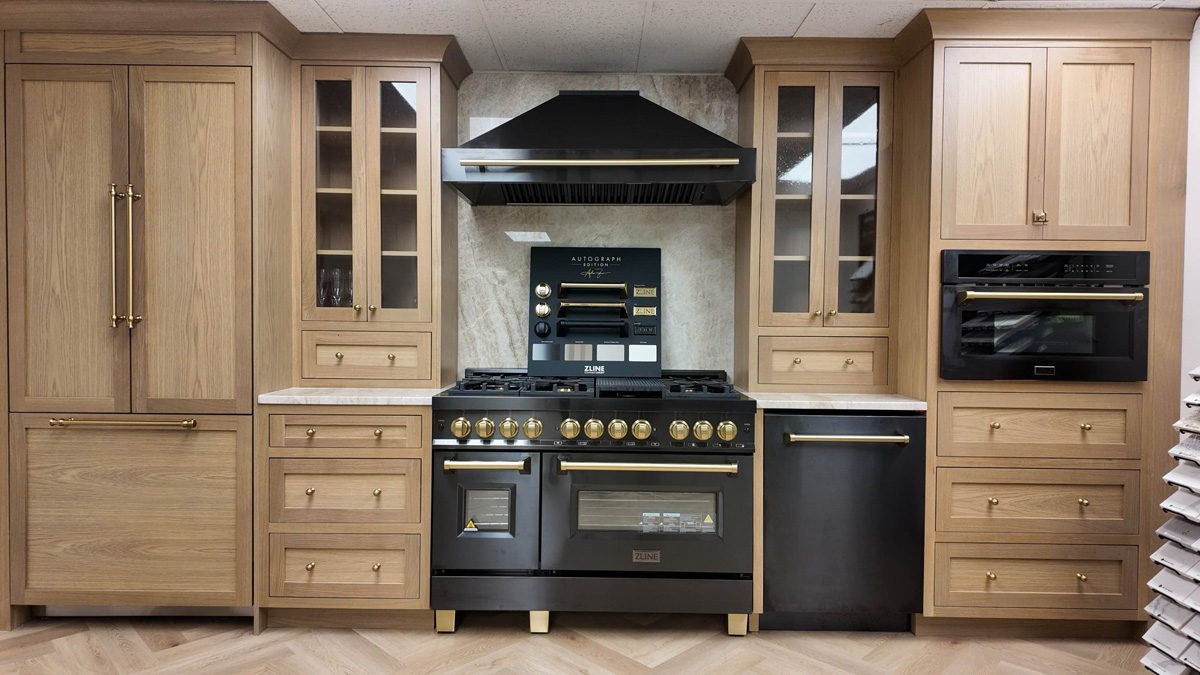 “The layout was carefully crafted to accommodate various large kitchen configurations, allowing us to demonstrate different walkway widths and appliance placements,” Sutton adds.