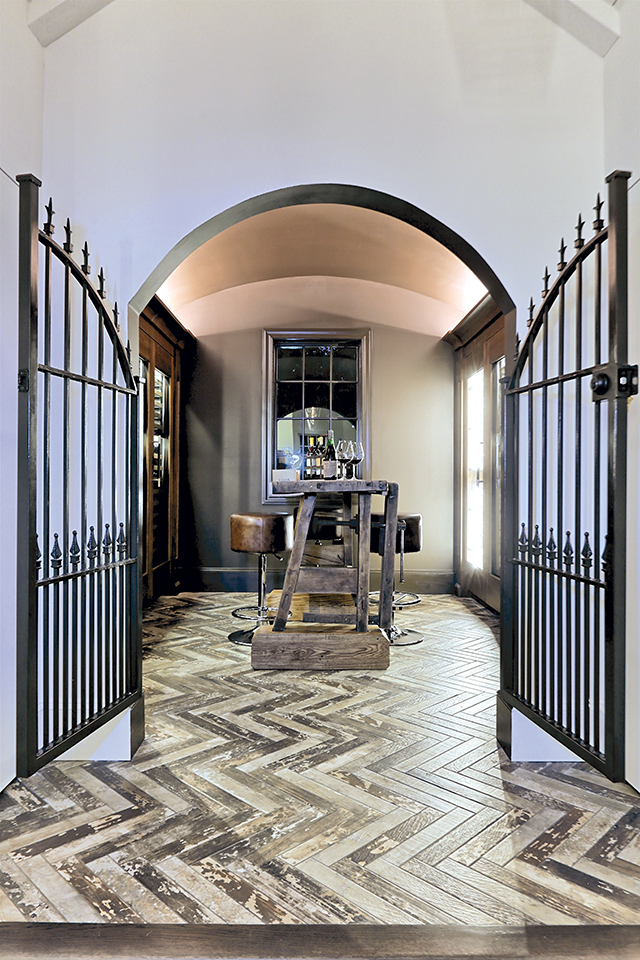 Additional Old World elements include the focal-point wrought iron gates at the room’s entrance, which set the tone for the space.