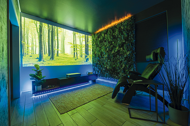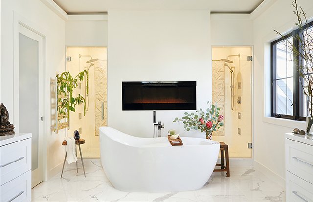 Homebuilding is also surging, with wellness showing up as a prominent selling tool. “Custom homebuilders with influence from the architect and design professional are the biggest proponents of incorporating wellness themes into their designs and products,” Diamond says. “This includes fitness and sanctuary/spa areas in their home bathrooms, and technology and entertainment inclusion in kitchens. We often see dedicated spaces for meditation, exercise rooms, indoor/outdoor lap pools, steam and sauna, salt tanks, cold plunge baths, cryotherapy (cold rooms) and hydrotherapy whirlpools. Separate private bath spaces in the master bath have been a popular design option when space allows.”