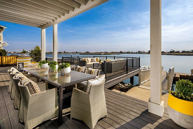 Homebuilder Davidson is including multiple outdoor living spaces in all its new Delta Coves coastal community residences in the San Francisco Bay Area, Hewitt says. “Each of the 42 homes has its own private dock, wrap-around decks, expanded decks over the water and upper decks with sleeping porches.’”