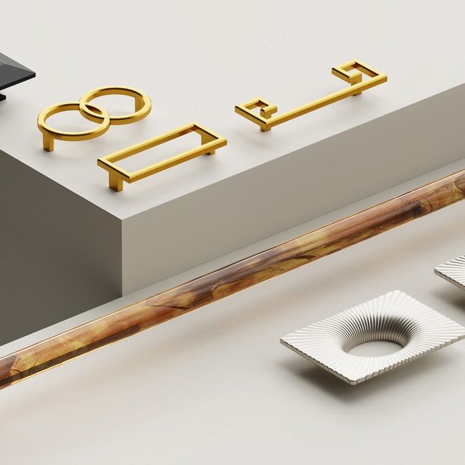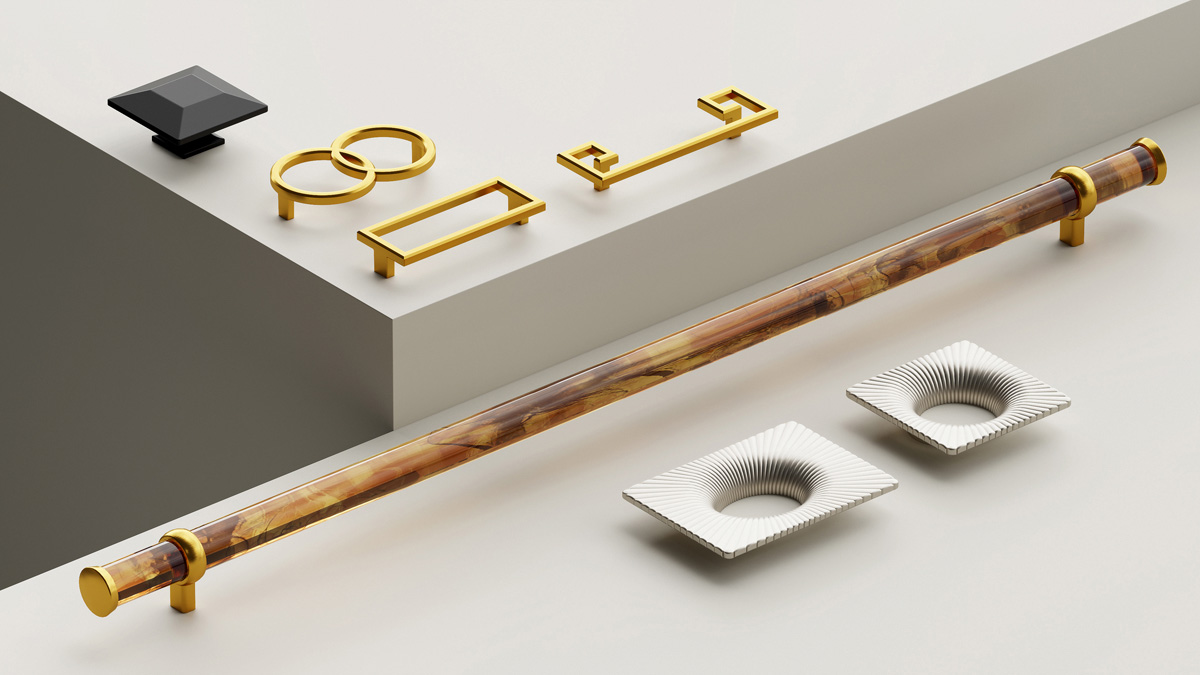 The Bijou Collection embodies an innovative fusion of historical design and modern elegance, according to Belwith Keeler. The collection includes 11 pieces, including the 33″ long Paramount pull available in acrylic, black, clear and Tortoise shell. The Akoya Knob is inspired by the spherical form of Akoya pearls, while the Luminescence Pull features an Art Deco-inspired pattern.