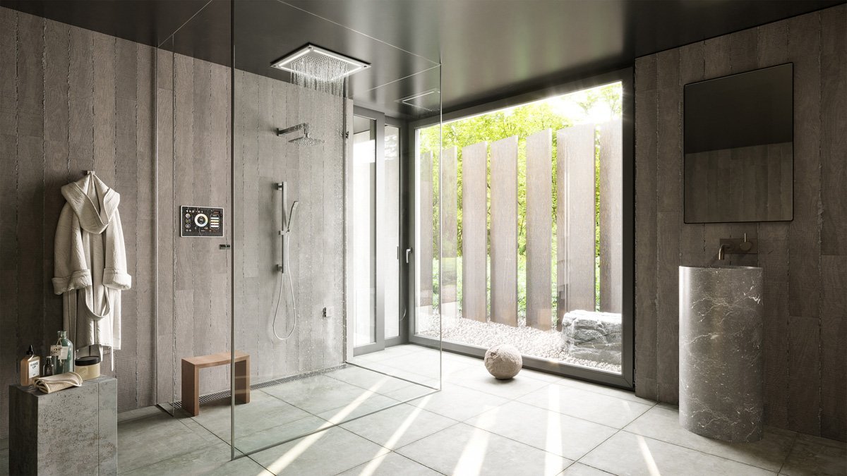 ThermaSol’s ThermaTouch2 in-shower control is available in 7″, 10″ and the newly unveiled 15″ screen option, which has a new interface and exclusive functionalities. The system offers a range of apps, including live television and music streaming, and syncs with smart home technology that allows users to turn on the shower remotely, set water at a certain temperature and pressure, activate steam therapy and control chromatherapy options through voice-activation.