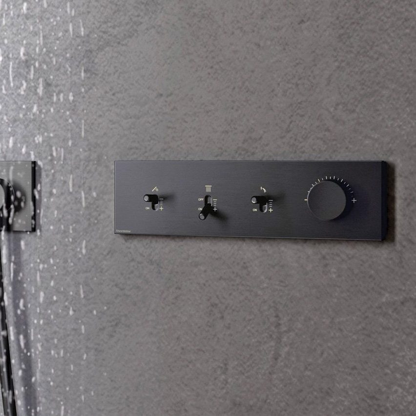 The Treemme WATT thermostatic shower system, available from AD Waters, showcases a design inspired by vintage lighting. The collection, in brass and 316 L inox, features a single mixer tap and thermostatic valves for built-in showers. The control panel is fitted with knobs similar to those of old transistor radios.