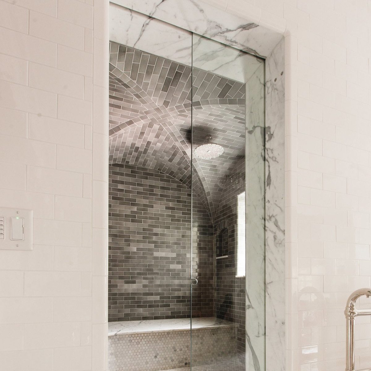 The AirPocket slide-in shower door from Airmada Drying Solutions is designed to replace the traditional swinging shower door to create a combination walk-in shower/steam shower, as the door can create a full shower seal. This walk-in/steam shower can be accompanied by either a flush or raised threshold. Airmada Airjet technology is built into the door, which dries difficult-to-reach pockets after use.