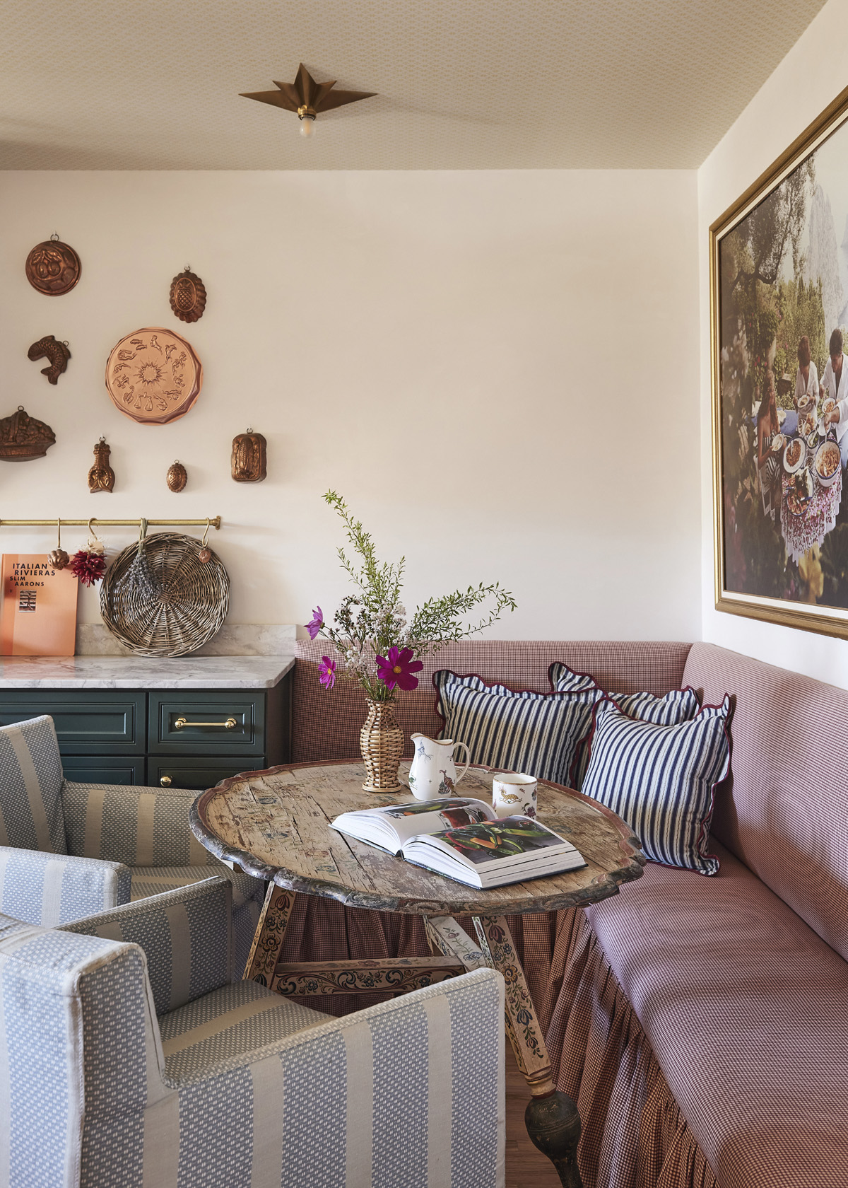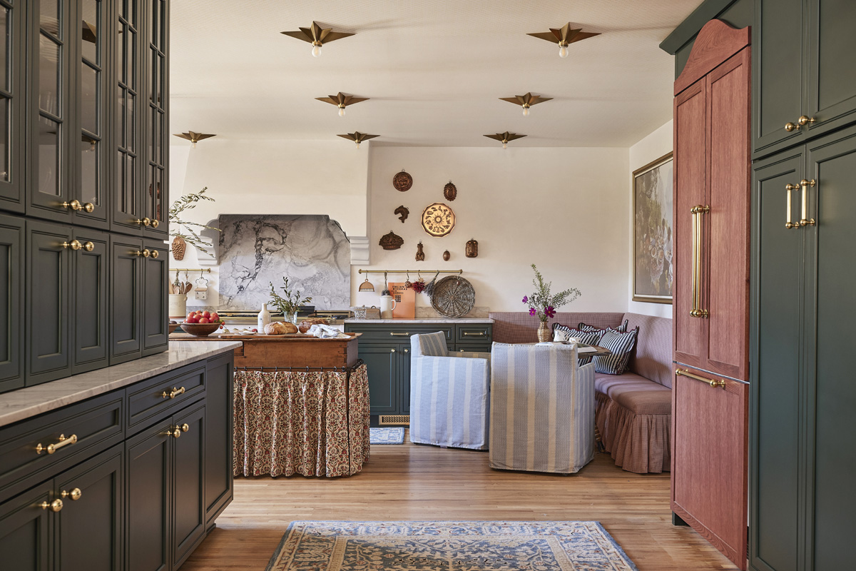 Sustainability played a meaningful role in the transformation of this former corridor-style kitchen and oddly laid out dining room into a warm, inviting eat-in kitchen that blends timeless elegance with comfort. The design duo integrated vintage and antique elements to create a layered and character-rich space that is now the heart of the home.