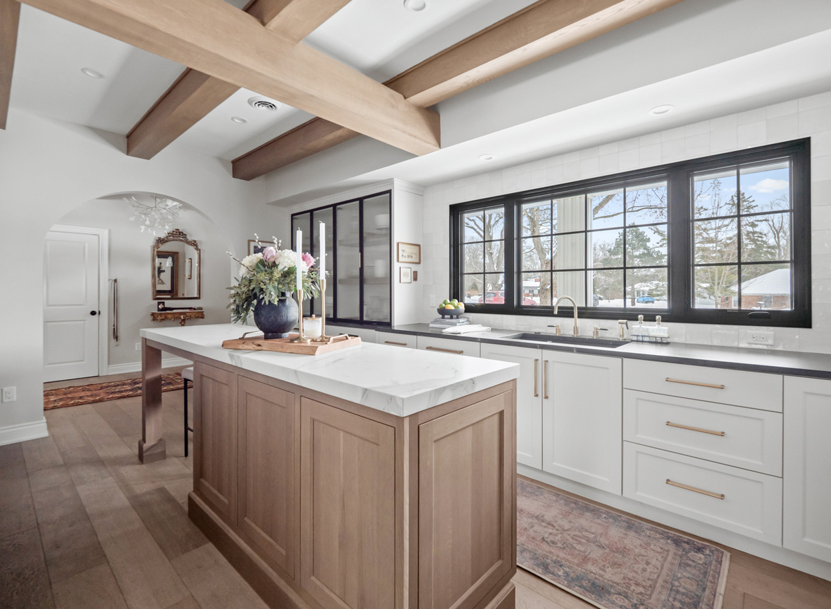 A major challenge of this Bloomfield Hills kitchen renovation was to rethink its spatial layout to create a more functional dining and entertaining area. The homeowners also wanted a warm, inviting space filled with natural light, unique design elements and a cohesive flow that honored the character of the home.