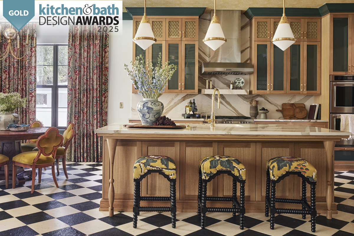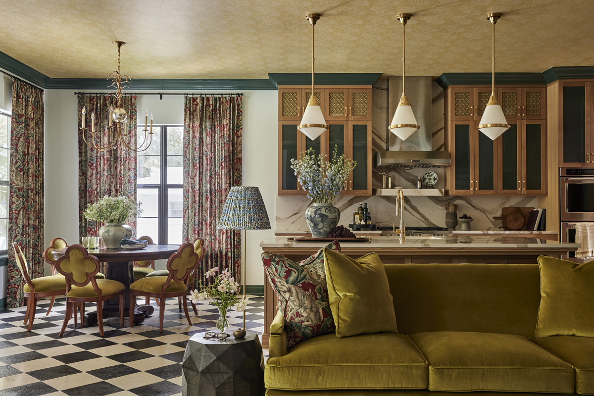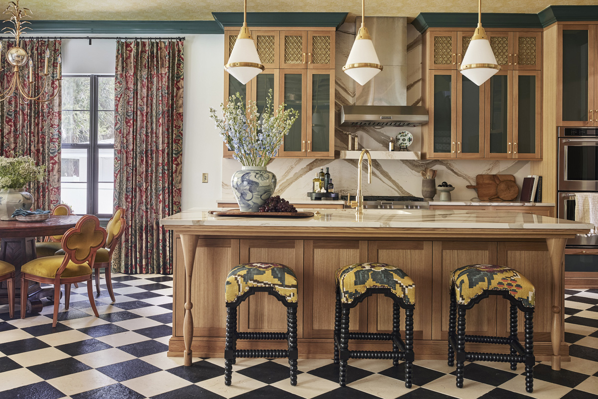 With a goal of blending the client’s French heritage with the charm of Old Florida design, this St. Petersburg, FL kitchen remodel embodies both European elegance and coastal vibrancy. The formerly blank canvas was transformed into a richly layered and highly personalized space that reflects the client’s unique aesthetic through a sophisticated mix of custom details, rich textures and a thoughtful palette that harmonizes with the rest of the home’s bold, patterned interiors.