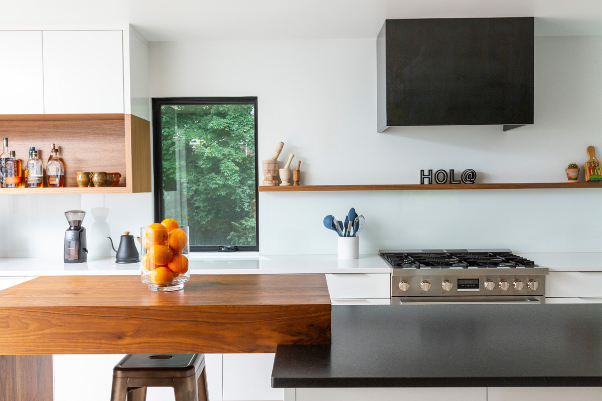 At over 50 years old, this poorly built and maintained suburban home needed an overhaul so it could better accommodate a family of five, along with their dog and frequent extended-stay family and guests. The clients also wanted to be able to cook together as a family and host large festive gatherings around a meal, both of which are culturally significant to their Puerto Rican heritage.