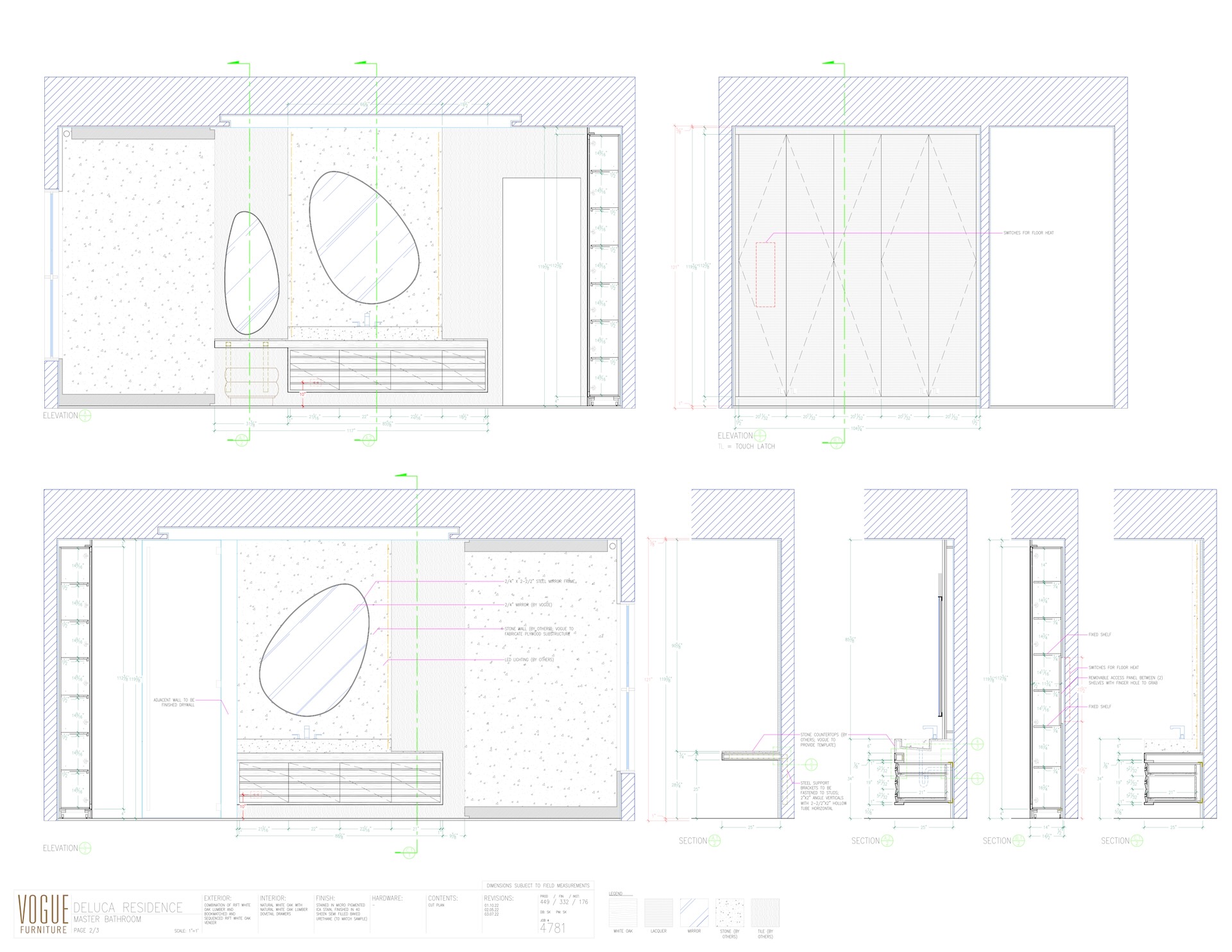 Warmth is woven throughout the space, with a custom walnut floating cabinetry, a teak shower mat and custom hand-woven wool rugs. The vanity is topped with porcelain from Laminam. The team also incorporated natural textures, such as Artistic Tile large-format stone and tile, to bring elements of the outdoors inside.