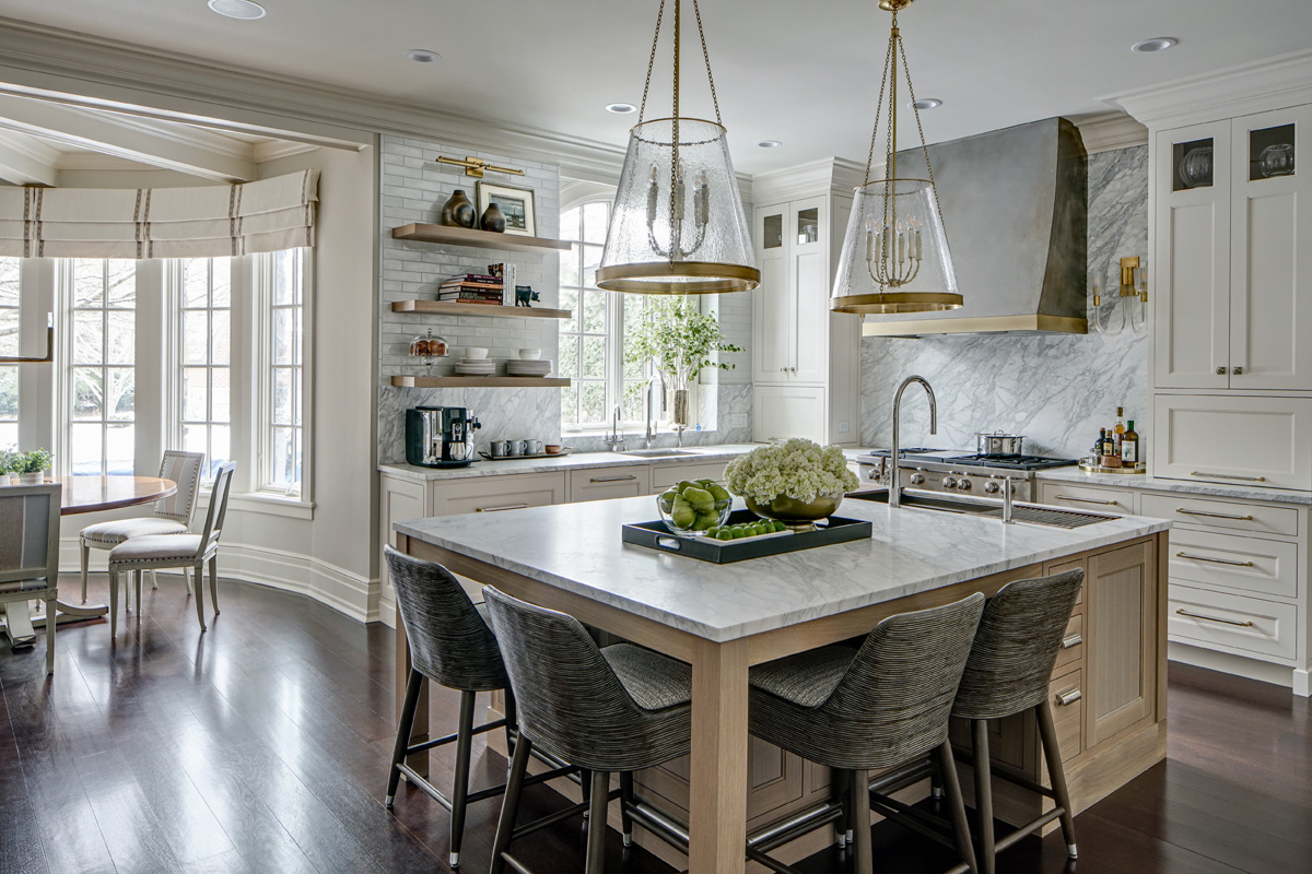 Empty nest homeowners decided to build their dream kitchen, replacing their outdated, traditional style space with one that would satisfy their passion for cooking, entertaining and hosting holiday gatherings. Burton met the couple’s desire for an elegant, timeless kitchen with a show-stopping design that was not only functional for daily routines but for special occasions with friends and family.