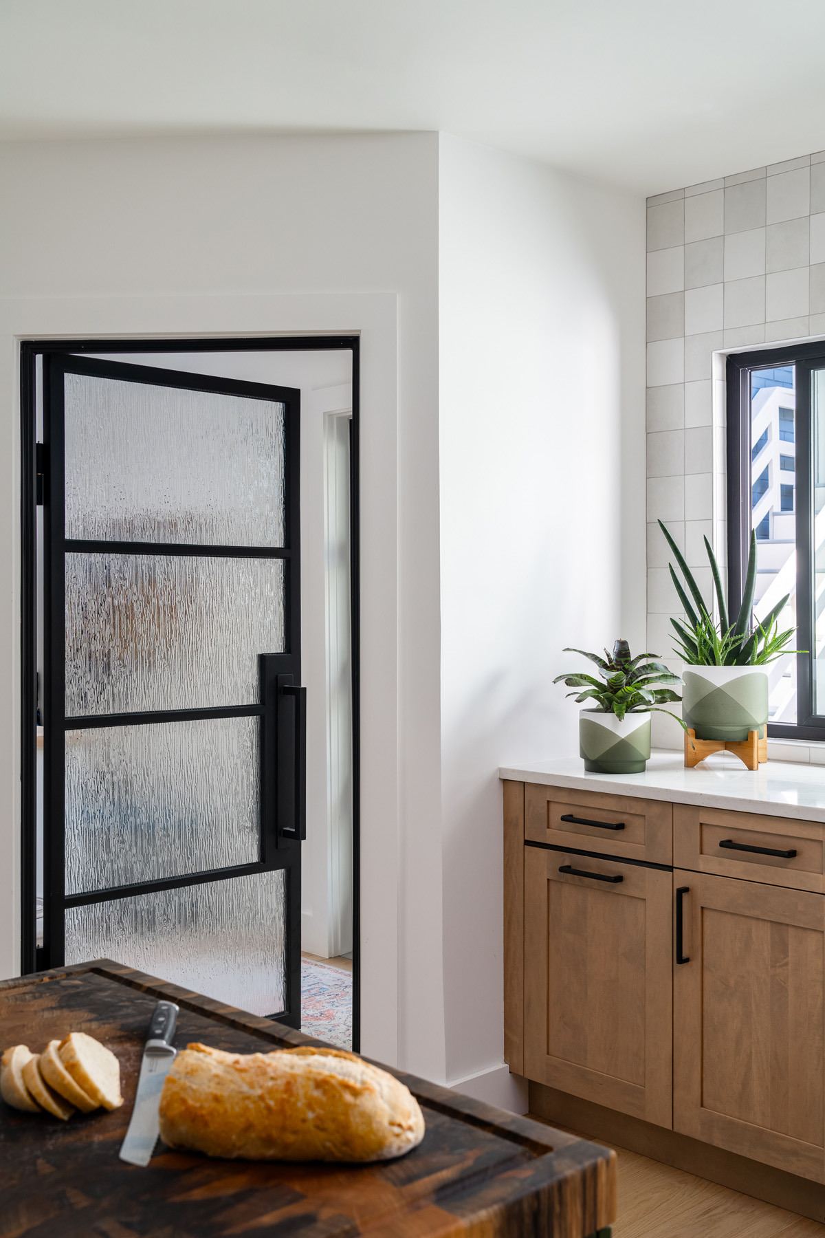 This 1920s two-story bungalow required an update to the kitchen and bar area. The new kitchen was placed where the old dining room was situated as it was a wider space and wouldn’t interrupt the main thoroughfare through the center of the house. The shifting of rooms required the relocation of windows and doors, and the design plan also had to work around supports and beams.