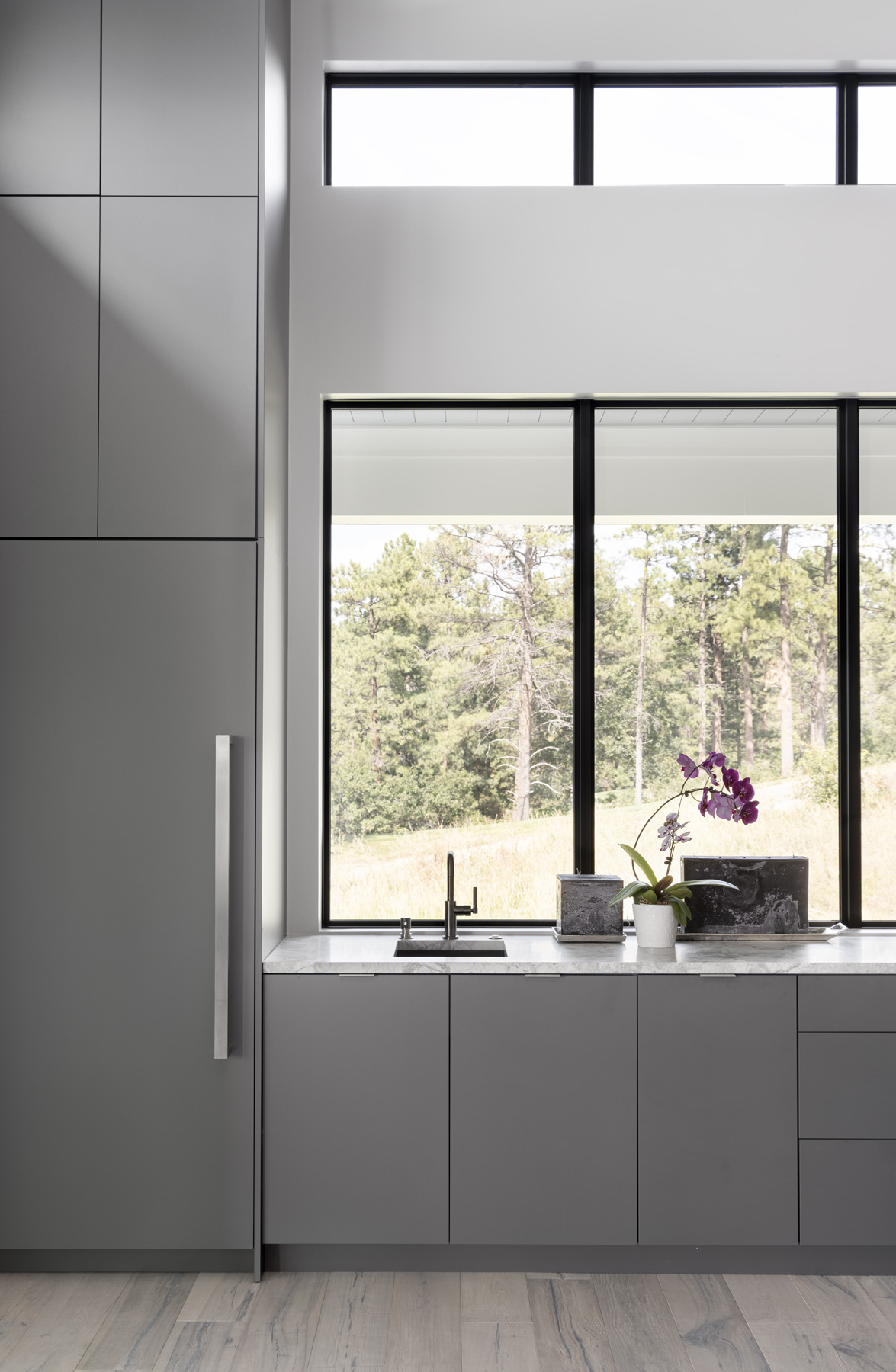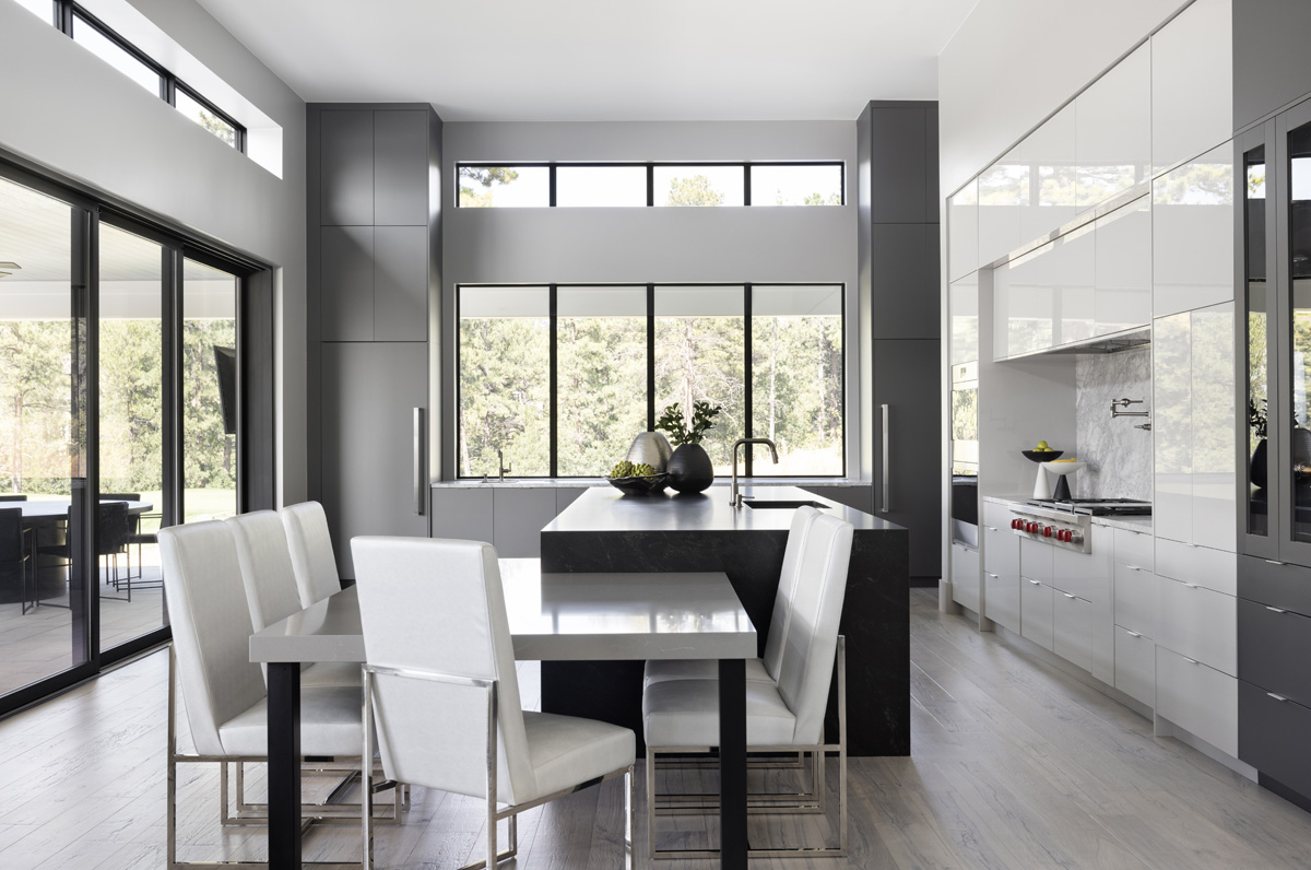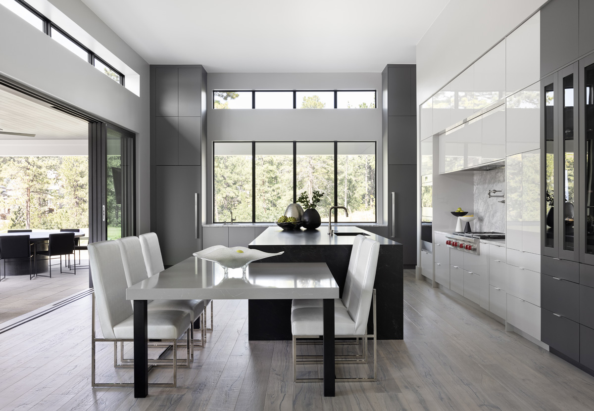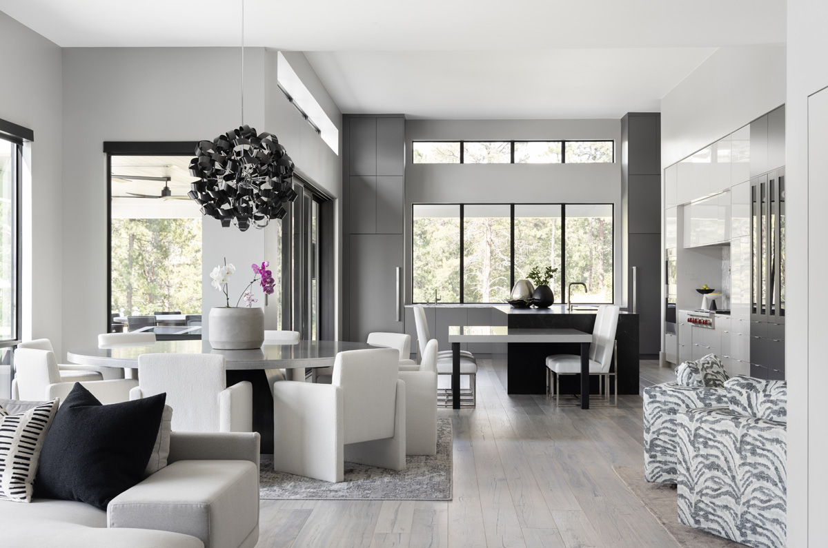Designed to seamlessly blend with the home’s open floor plan and capitalize on the breathtaking views of the Colorado mountains and private golf course, the kitchen in this elegant and sophisticated new-build home serves as the centerpiece of the residence where culinary delights and captivating scenery converge.