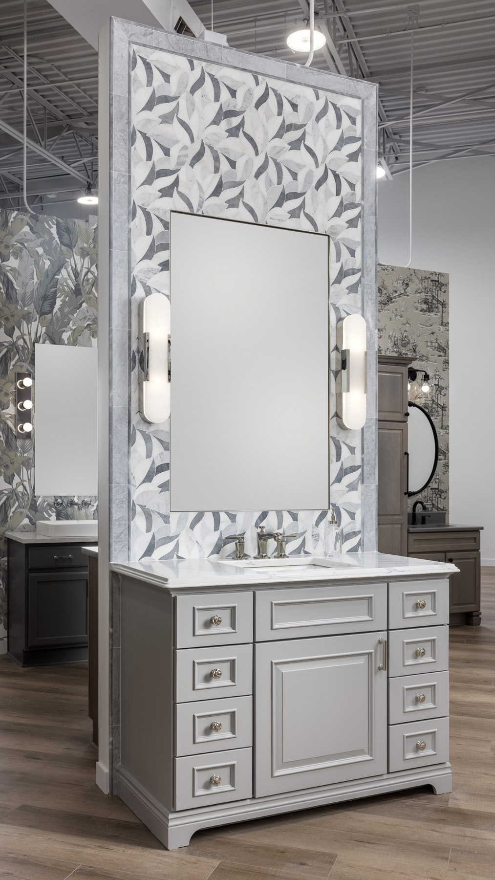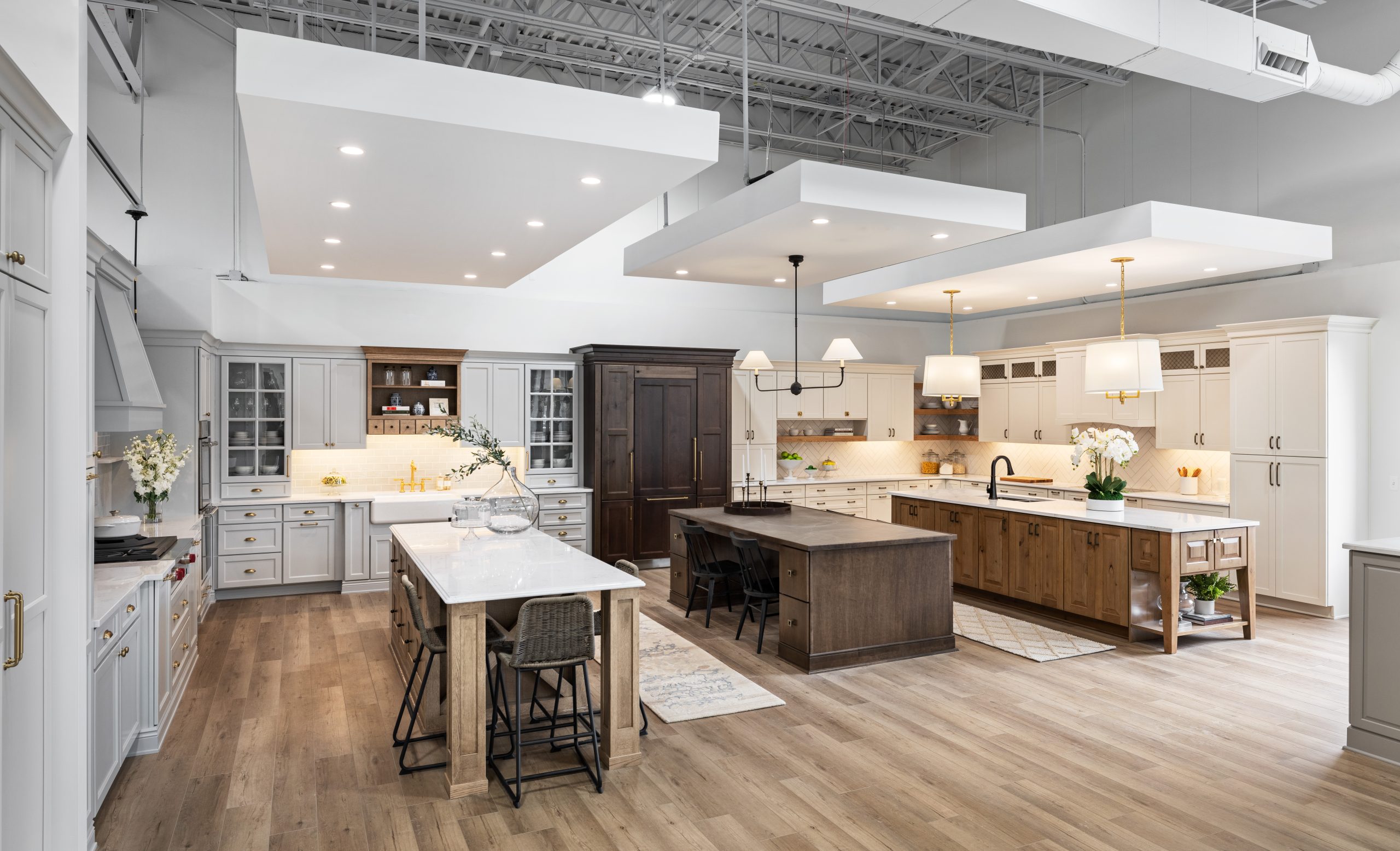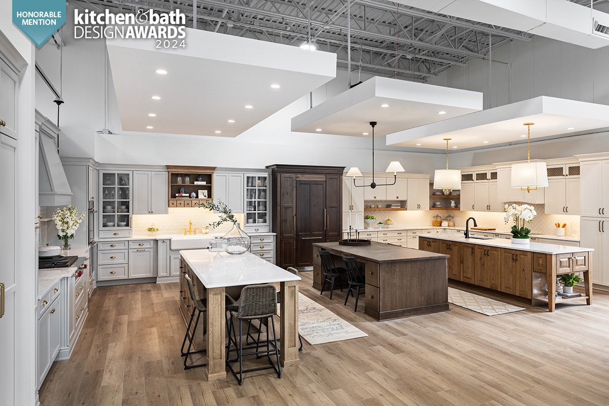 This new-build project to create one of the largest design centers and showrooms in the Northville, MI area was a grand undertaking, to say the least. The vision for the whopping 9,500-sq.-ft. space included six kitchen displays, five baths, mudrooms, laundry rooms, office spaces and more. The goal was to present visitors with a comprehensive experience that would inspire them with the latest trends and innovations.