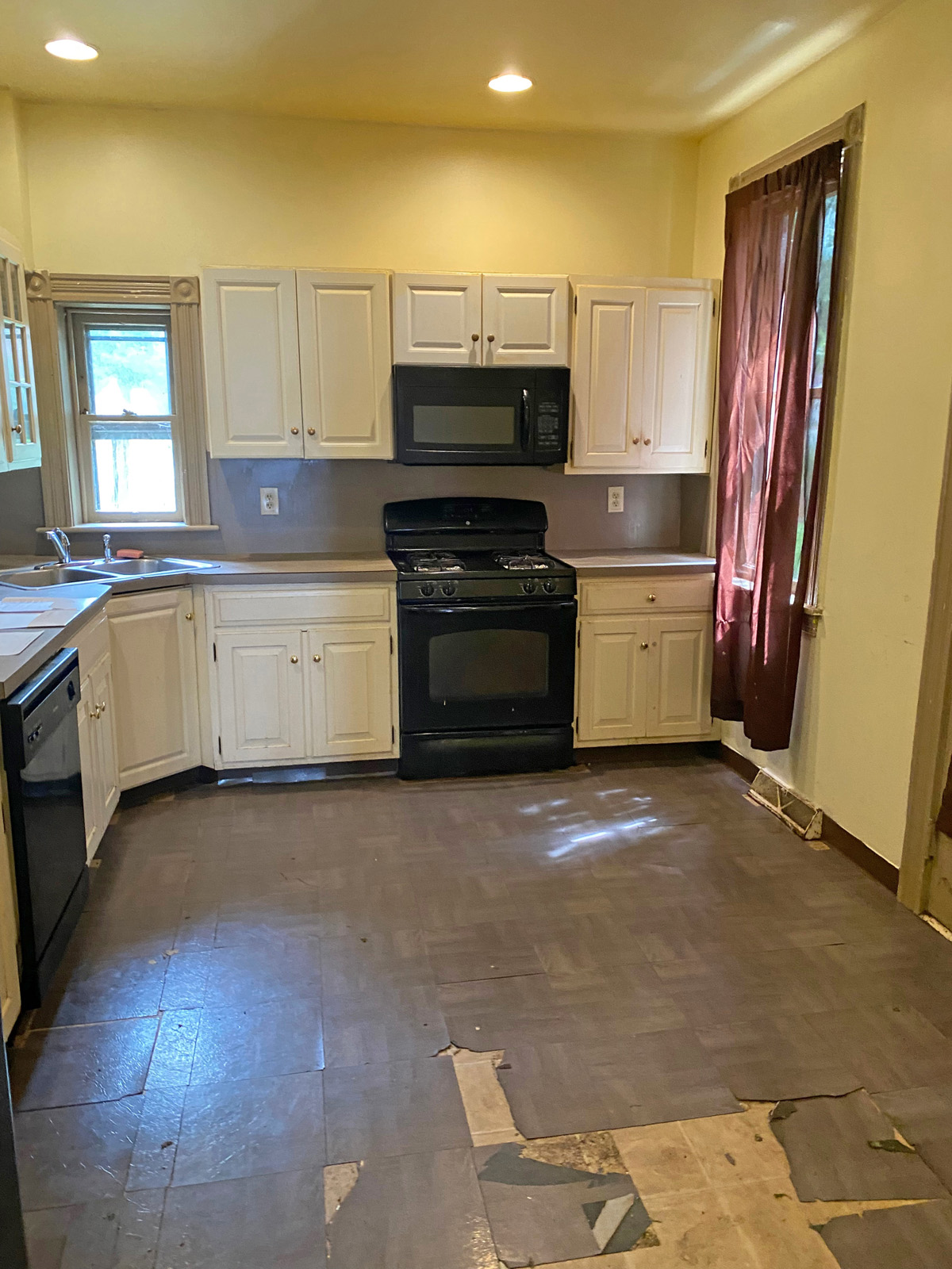Due to heavy use and poor maintenance, the old kitchen had to be completely demolished and reconceived, requiring entirely new cabinetry, appliances and finishes, not to mention utility connections.