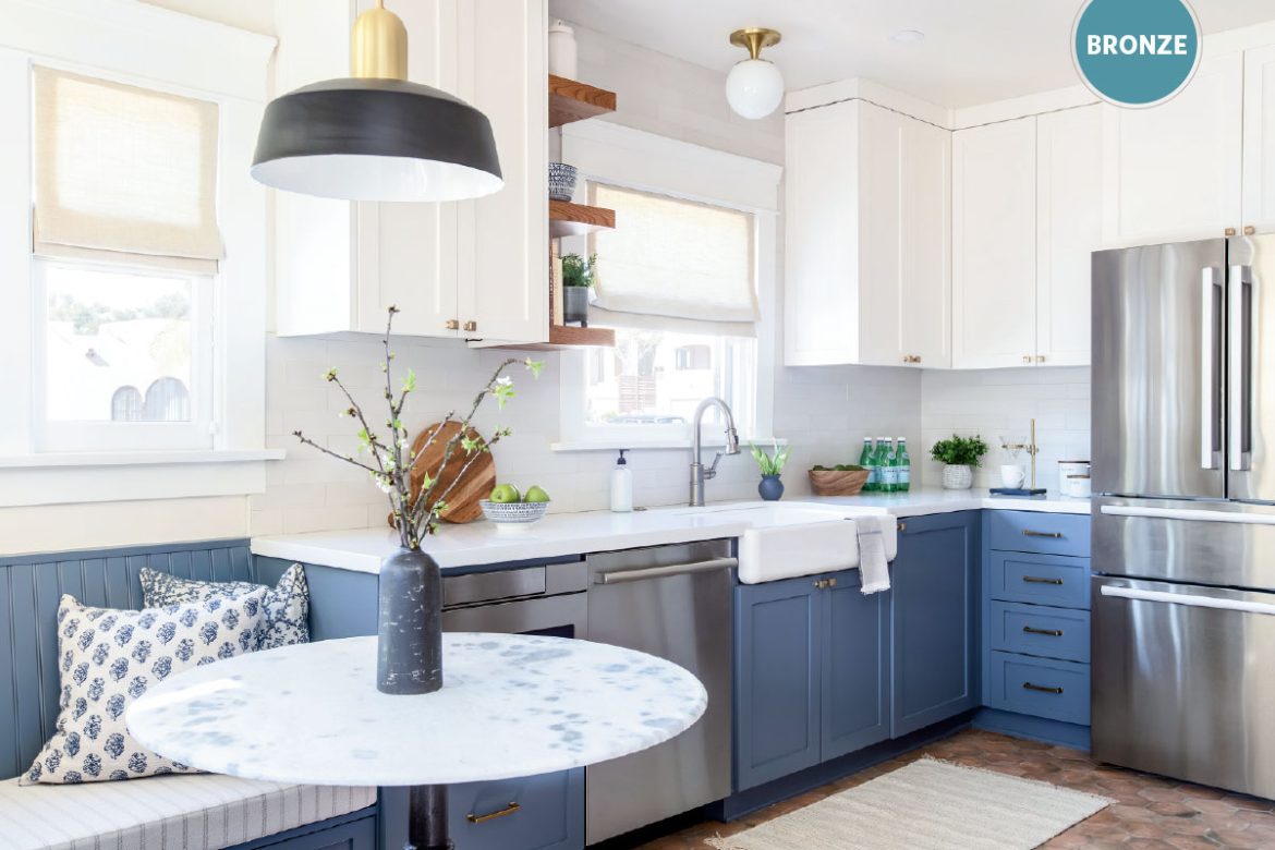This 100-year-old Spanish Revival bungalow had great bones, but the kitchen was terribly outdated. It was a priority to keep the original windows and door locations, but create a more functional floor plan, maximize storage and add a built-in seating nook.