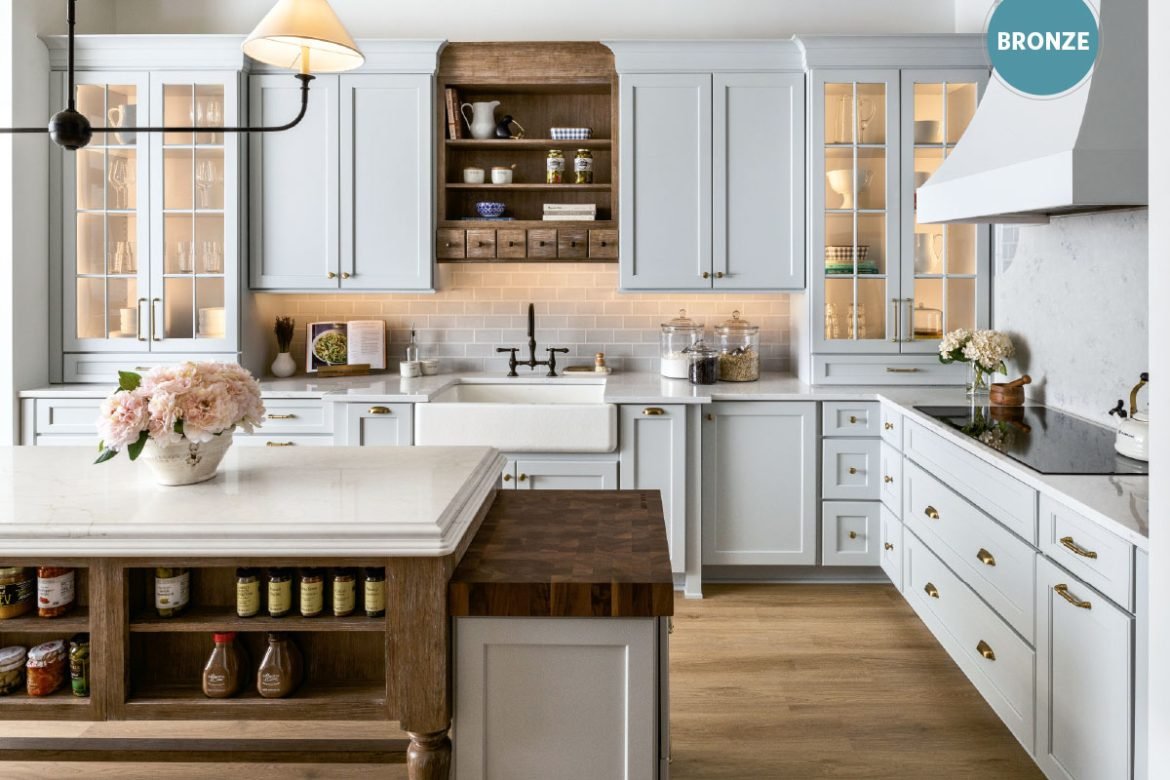 When conceptualizing a new KSI Kitchen & Bath showroom in Rochester Hills, MI, Lauren Tolles, co-owner of KSI and founder of Maison Birmingham, faced a challenge – namely, fitting three full kitchen displays (one functional) and three baths, as well as office space, a presentation room and a restroom, into 997 square feet. The goal was to provide inspiration to homeowners and designers; incorporate several cabinetry styles from multiple manufacturers, including Dura Supreme, Merillat and Medallion; and showcase multiple design styles in one vignette – all while maintaining elegance and not creating a cluttered feeling.