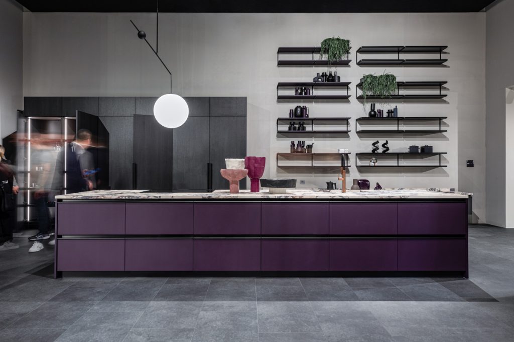 While wood tones are making a comeback, especially in U.S. kitchens, Eurocucina was all about color. Blues and greens have given way to more unexpected tones of coral, peach and purple, often accented with black or wood-toned open shelving and islands. Everything from dark tones of black, brown and eggplant to the wispiest sage green and pale wood was on display and worked within their individual designs.