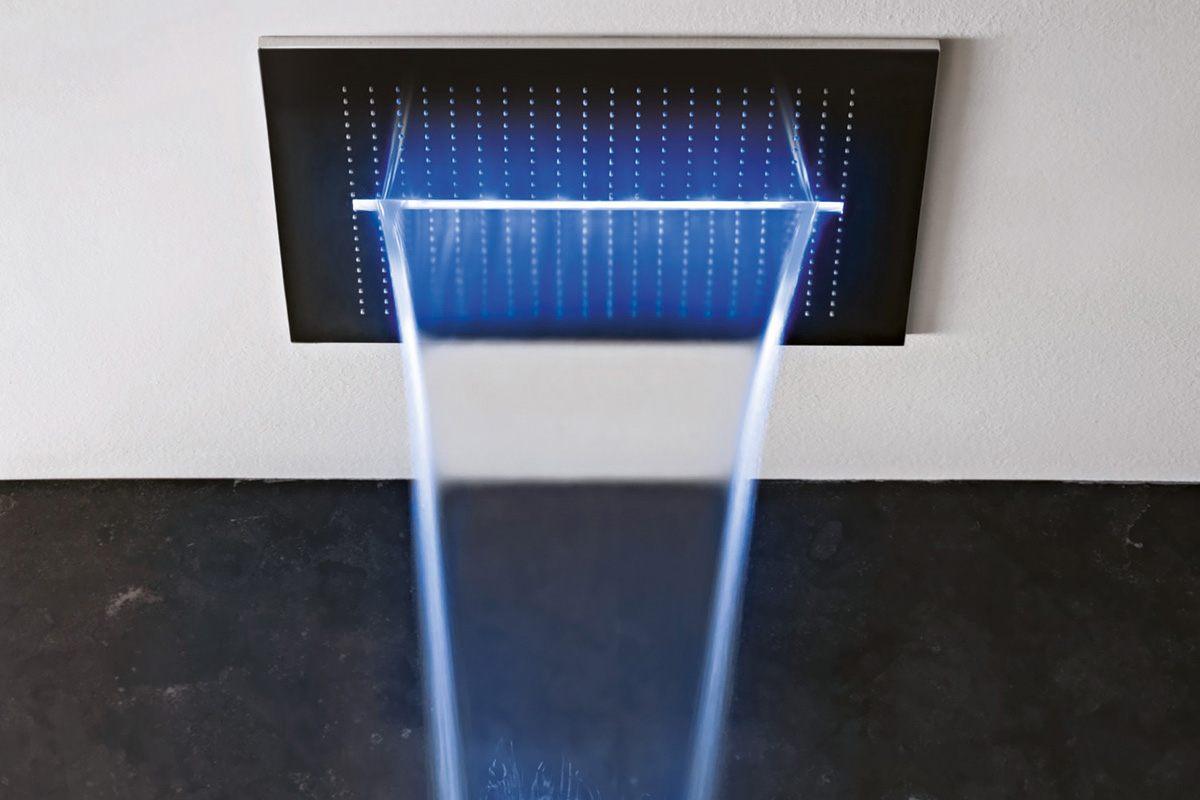 Showerheads are also delivering water in multiple ways – from the lightest mists to full sheets to massaging pulses. And it’s not just about the experience. The fittings on display were bold and different from anything previously seen, with heads that were distinctively decorative via interesting materials and shapes. Turn on those lights and streams and it’s a whole different shower experience.
