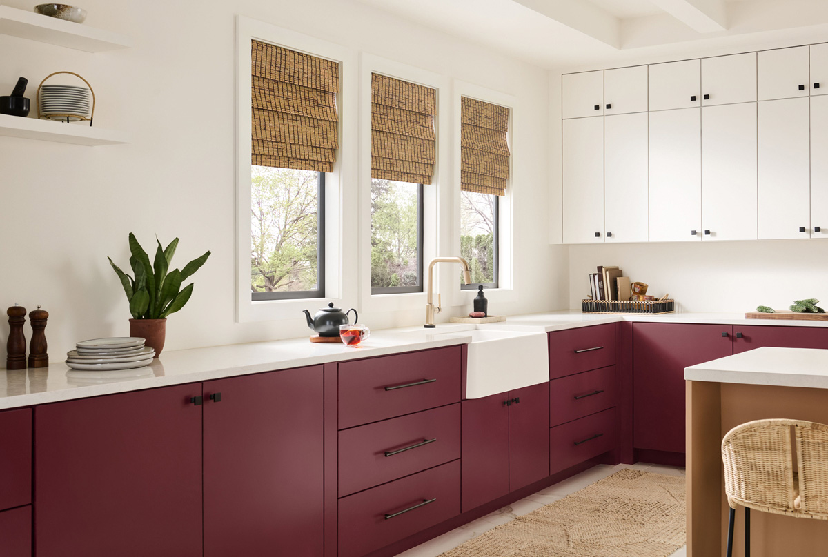 “We also see consumers reaching for nostalgic colors with a modern twist such as Rumors,” she continues. “It can be incorporated in various ways within kitchen and bathroom spaces. For example, it works as a striking accent on kitchen cabinets against neutral backdrops. Alternatively, the red hue can be used to color drench a bathroom for an unexpected bold moment. While neutrals will remain popular, we see consumers craving colors that energize and make a statement in a space.”