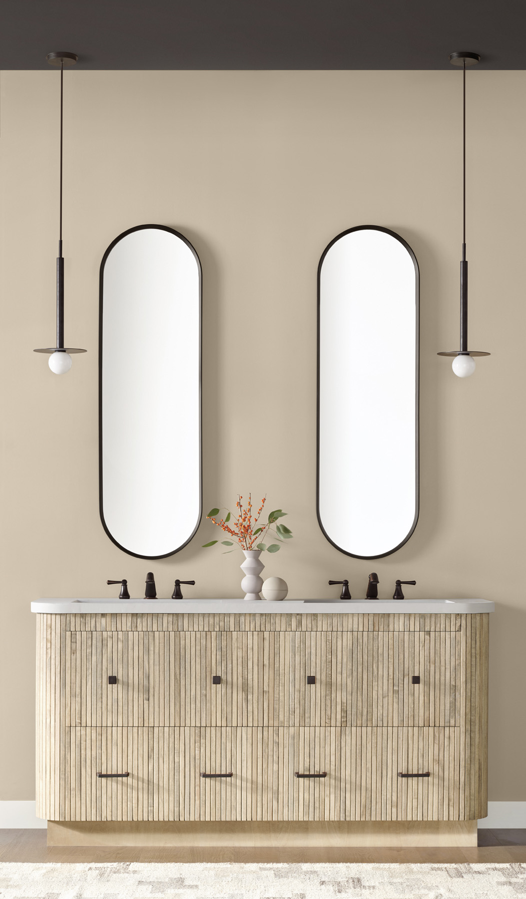 “Consumers are going either very light or very dark,” she adds. “They are shying away from pure colors and going for more understated and complex shades. I love the idea of creating a soft and feminine bathroom using Malabar and Mauve Finery. And for the kitchen, Sunbleached is the perfect color for a cozy and refined, yet bright, kitchen.”