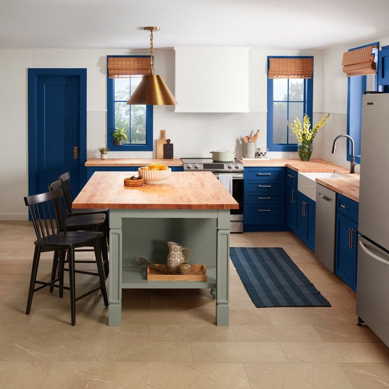 “Typically, we see consumers reaching for calming colors for the kitchen and bathroom spaces, but as we head into 2025, we see an increased desire for bolder hues to reflect a confidence and energetic force,” says Woelfel. “Dark greens like Amazon Jungle or blue-blacks like Black Sapphire achieve this effect.