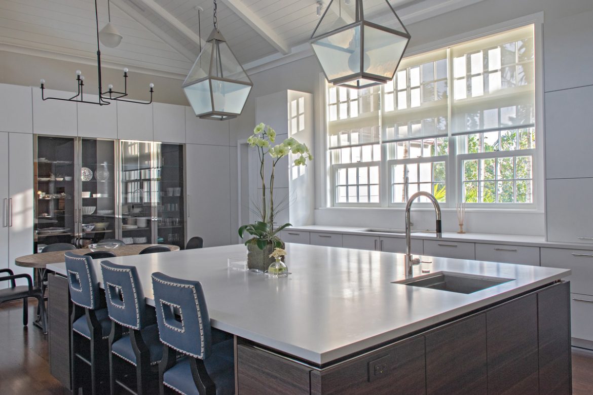 PALM BEACH, FL — This Florida oasis was created as the dream home for a couple who split their time between Palm Beach and New York City. As a place where the couple could relax and enjoy being outdoors year-round, one request was for a classic, streamlined kitchen that would lend itself to entertaining. The homeowners wanted both a place where a treasured collection of serving ware could be displayed, and enough storage space to tuck away small appliances and other necessities.