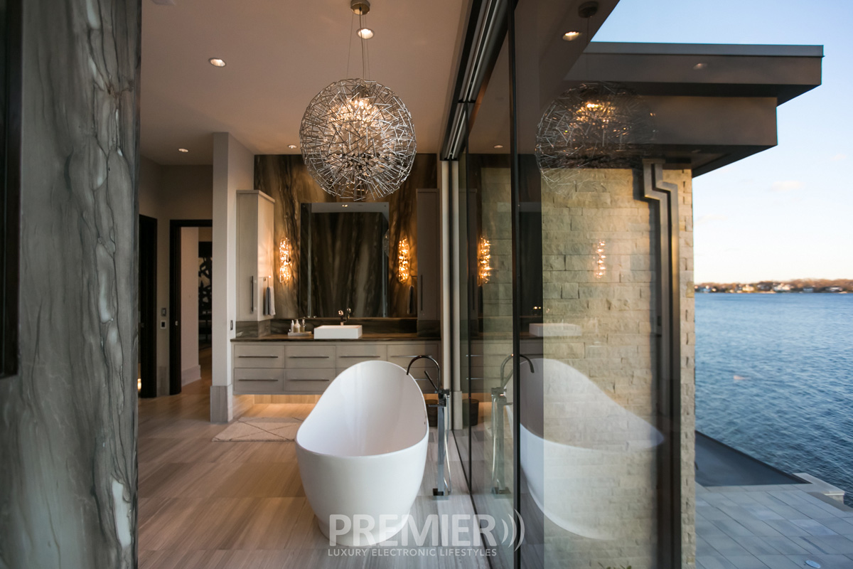 In bathrooms, Barth’s firm is enabling smart showers and motorized privacy shades. An alternative he likes is smart glass, which he describes as opaque when electrified, transparent otherwise. “When we integrate this into our control system, you can press your ‘Good Morning’ button in your bed and the path to the bathroom lights up, while the glass is activated so the neighbors can’t see in. Later, during the day, the glass can be translucent to allow more natural light and enjoy the view.”
