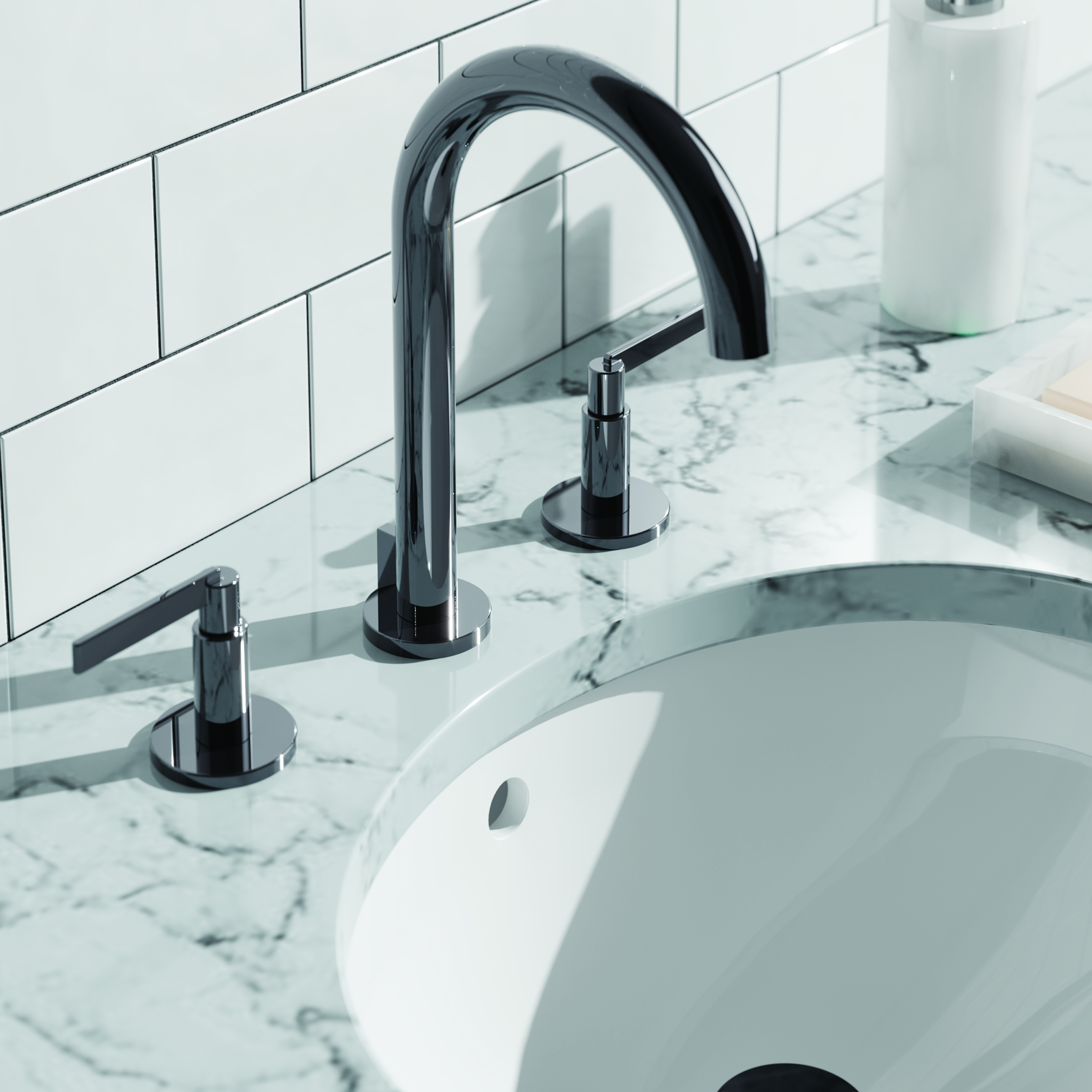 Newport Brass has introduced the Tolmin widespread collection, a sleek, contemporary faucet that blends style and function, notes the firm. Available in 20-plus finishes with a C-spout or mitered spout, it features solid brass construction, ADA compliance, ceramic disc valves and a pop-up drain.