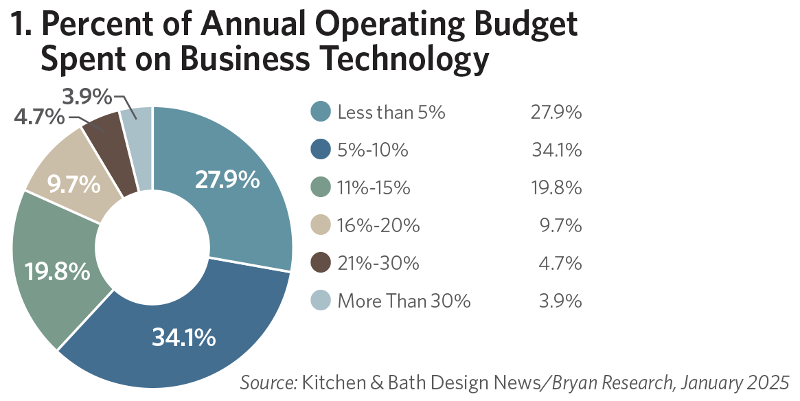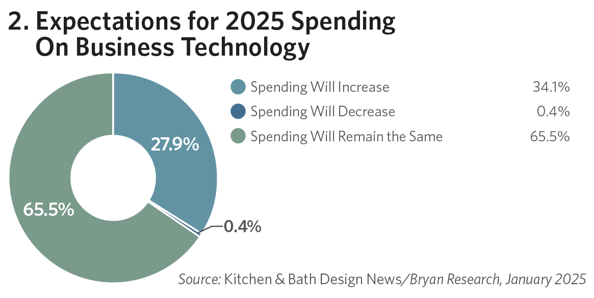 Surveyed business owners told KBDN that they are spending, on average, 8.4% of their annual operating budget on technology, although about one in three report they expect that percentage to increase in 2025. Interestingly, nearly 4% report that they spend more than 30% of their annual operating budget on technological advancements, a reflection of both technological advances and increasingly tech-savvy clients (see Figures 1 & 2).
