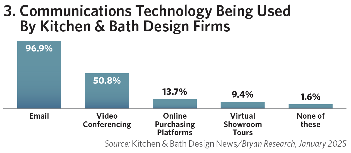 That is the key finding of anationwide survey of kitchen/bath dealers and design firms conducted by Kitchen & Bath Design News in conjunction with KBDN’s exclusive research partner, Bryan Research. The online survey, which drew responses from nearly 300 industry professionals, was fielded in January and mirrors the findings of other surveys regarding the use of technology in the design, remodeling and construction trades (see related Editorial).