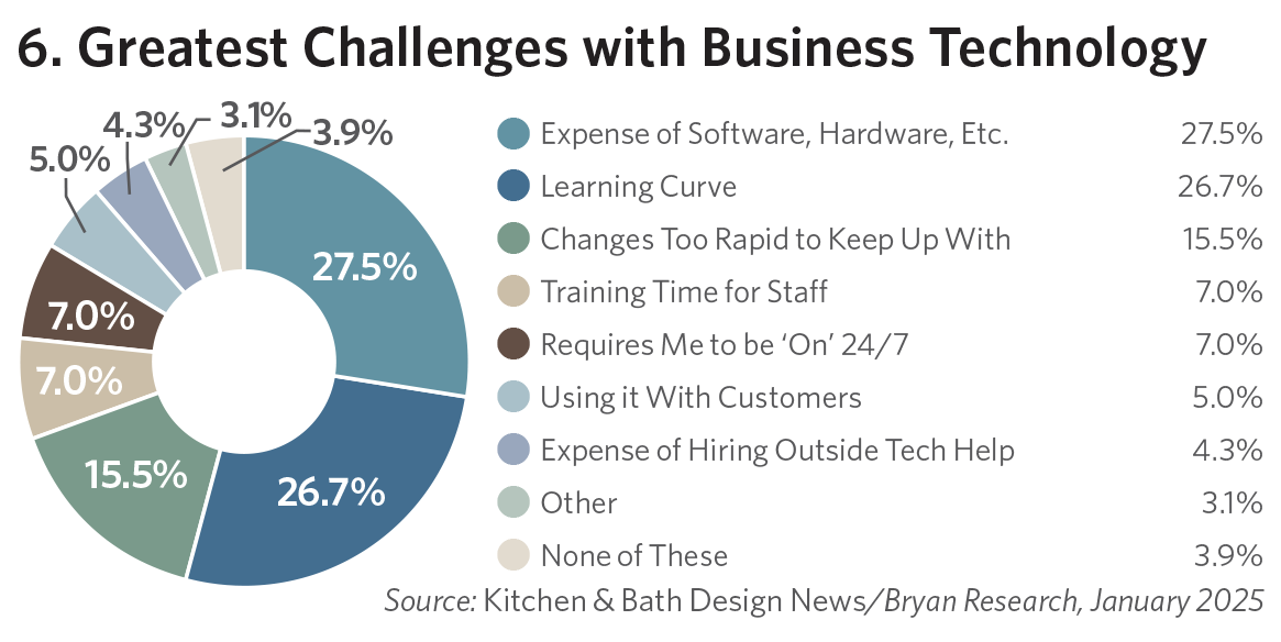 - “Upgrades will be needed to our existing technology, but there’s a lack of interest in learning some of the newer tech options since technology changes so fast and we’re less inclined to invest the time and money into learning something new that may change or not be around in a few years,” adds another design pro.”