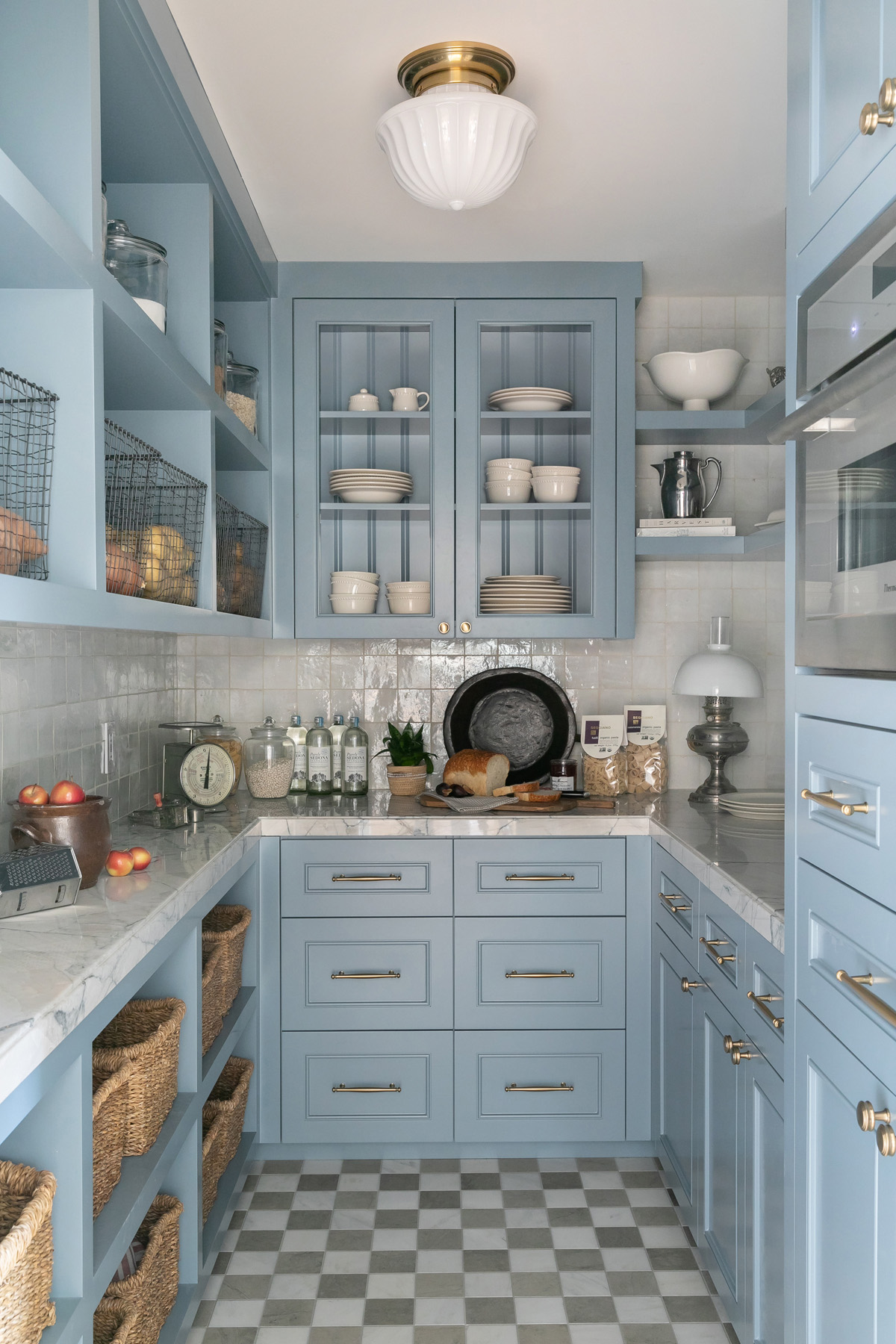 “The simpler Zagora tile works well with the checkered pantry floor,” she says, “and the patterned clé tile is the icing on the cake in the kitchen.”