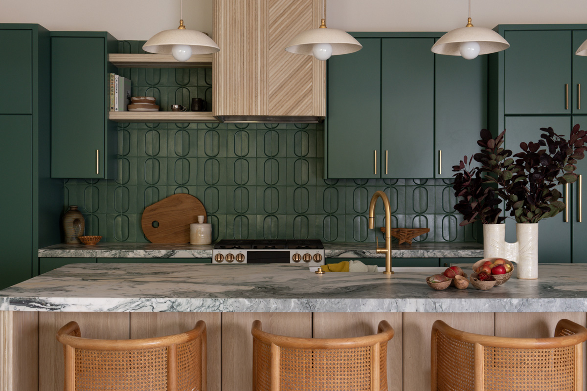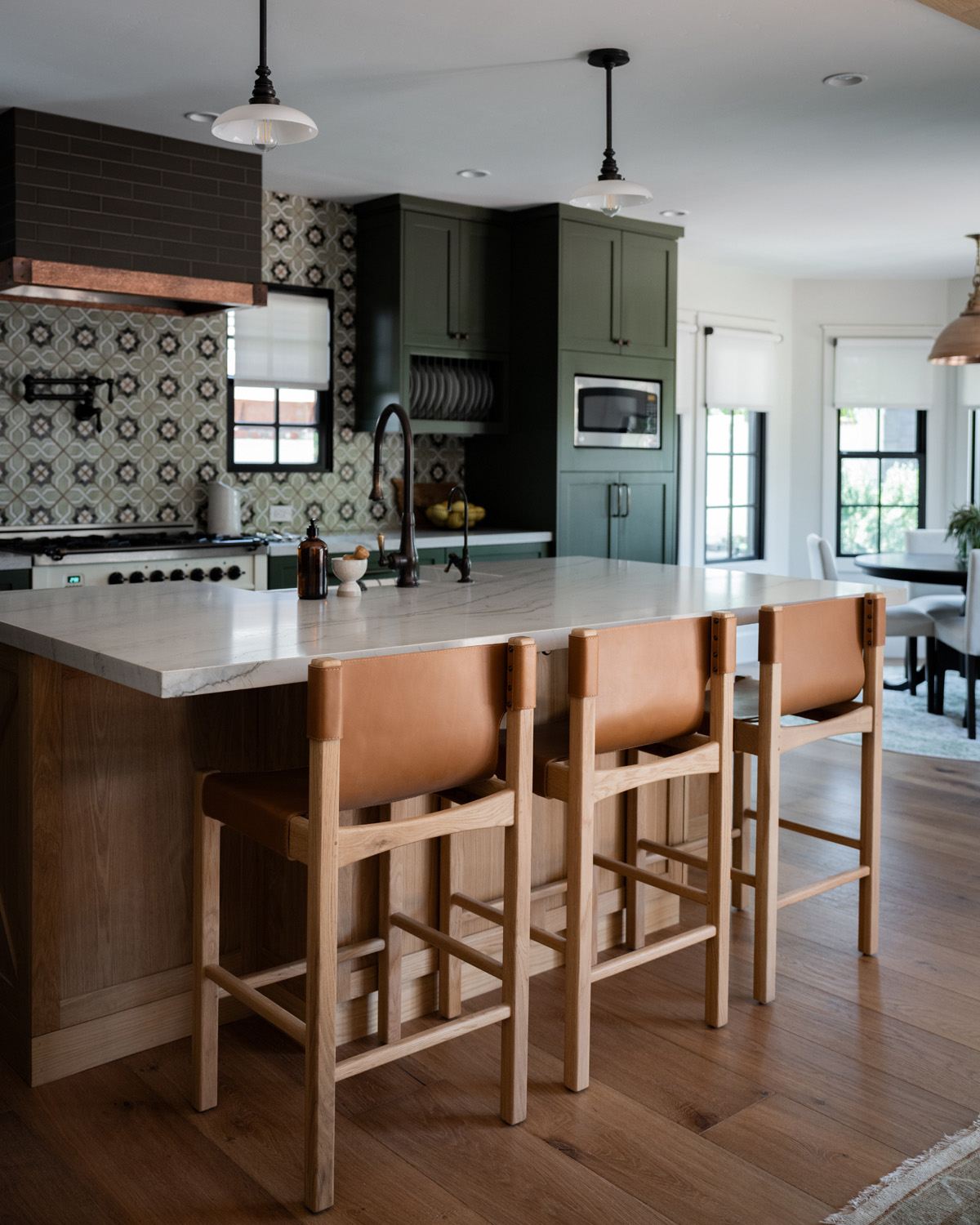 Because her clients wanted to keep their cooktop in the island, Torosian clad multiple walls with the tile to create a focal-point moment sans the often-customary ‘wow’ ventilation hood.