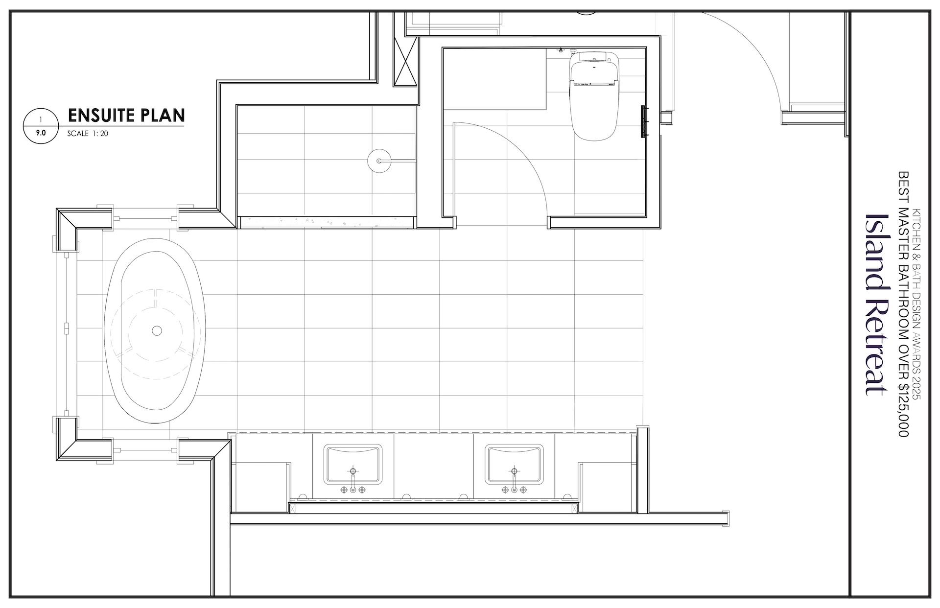 Framed by surrounding trees and infused with natural light, this home was designed to feel serene and connected to its island setting. A key objective of this project was to integrate a comprehensive five-piece ensuite, including a double vanity, oversized walk-in shower, enclosed water closet, and a tub alcove enveloped by windows. Achieving this level of detail and function within a narrow footprint presented one of the project’s greatest design challenges.