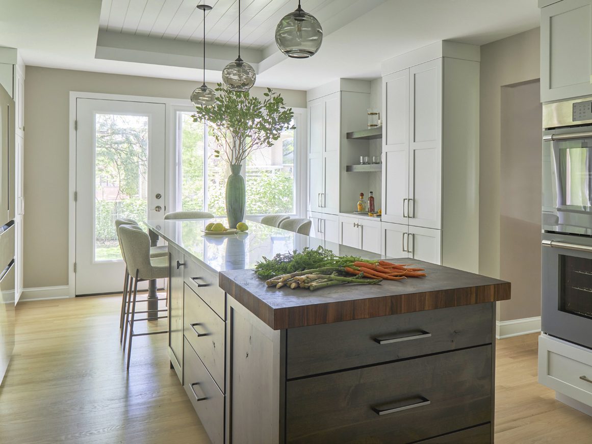 “We do a lot of work in older homes where kitchens are modest, very utilitarian and tucked away,” she says. “As needs and lifestyles have changed, we look to expand kitchens by opening walls to adjacent spaces, typically dining rooms. This allows us an opportunity to expand the footprint and bring more light into the kitchen. Everyday function is always the focus, but the extra space captured, typically in dining rooms, gives us flexibility to create coffee bars, china pantries and more, all while giving better flow.”
