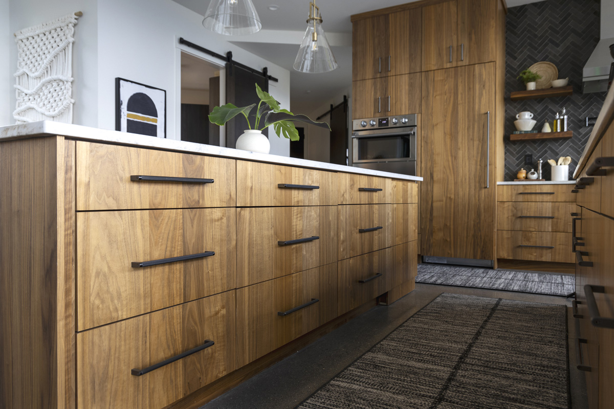 A plethora of deep drawers and a walk-in pantry were the main storage solutions for another recent kitchen project, this time a new-construction home where Neff-Hinkle’s clients minimized upper cabinets to preserve their mountain view.