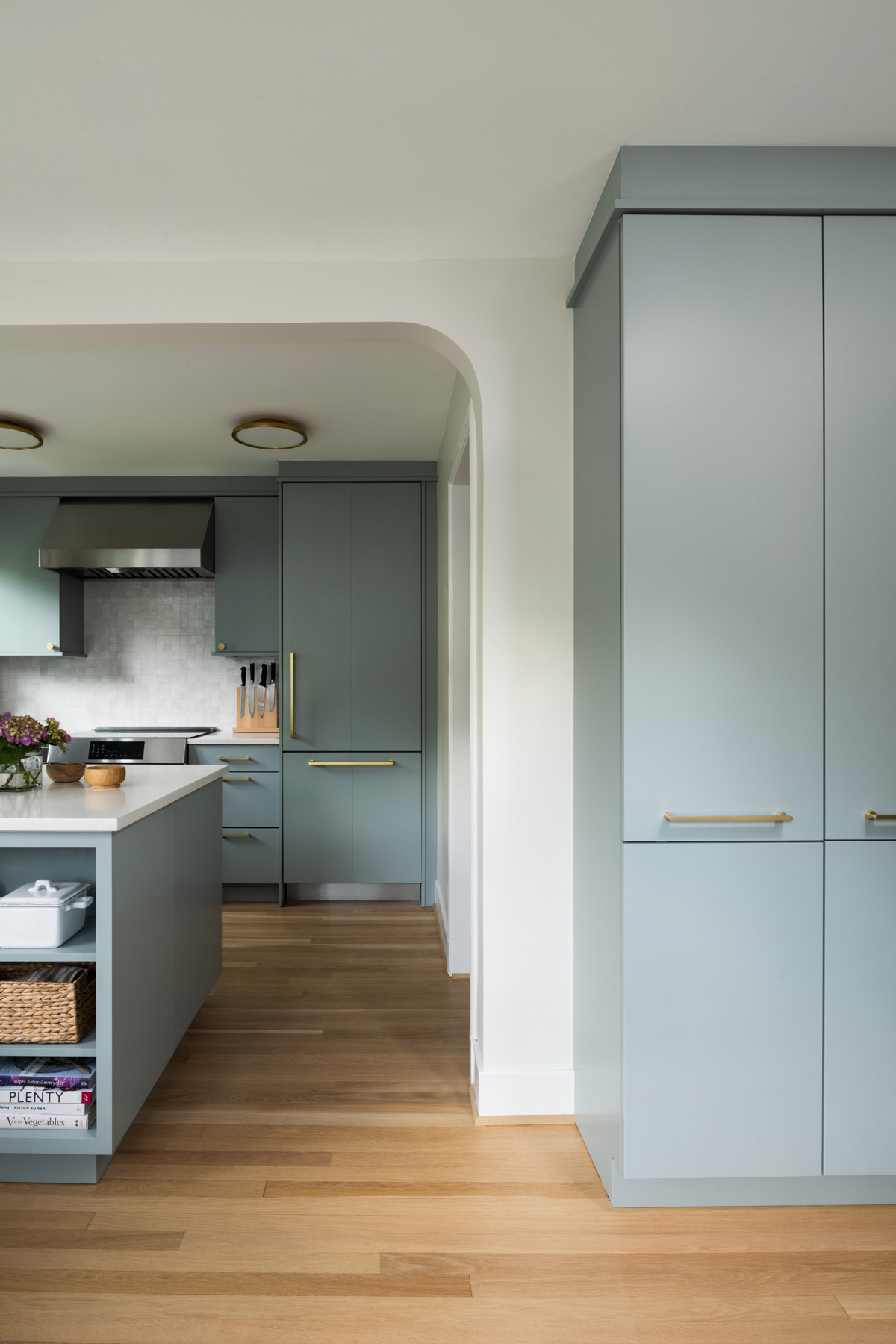 When the kitchens she works in are on the smaller side, Emerson also looks to adjacent spaces to help ease storage pressure within a limited-space kitchen.